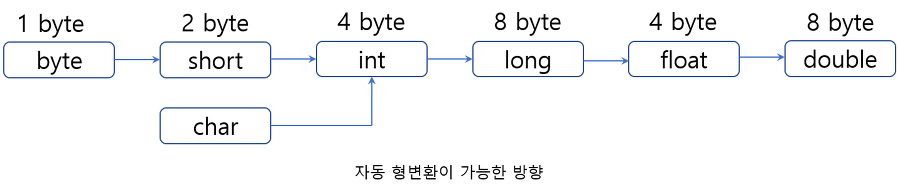 - 자료형의 표현 범위가 큰 방향으로 형 변환이 일어납니다.