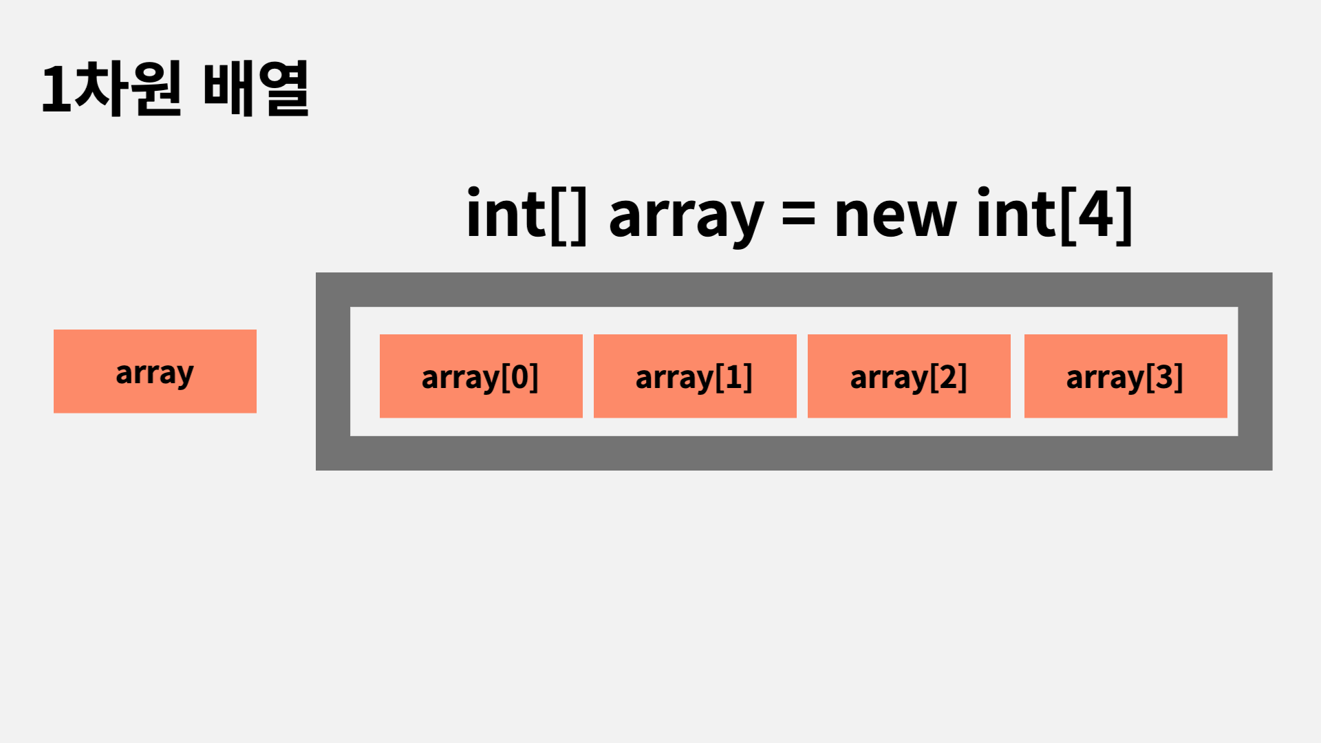 int[] array //배열의 인스턴스를 참조할 수 있는 '참조변수의 선언'