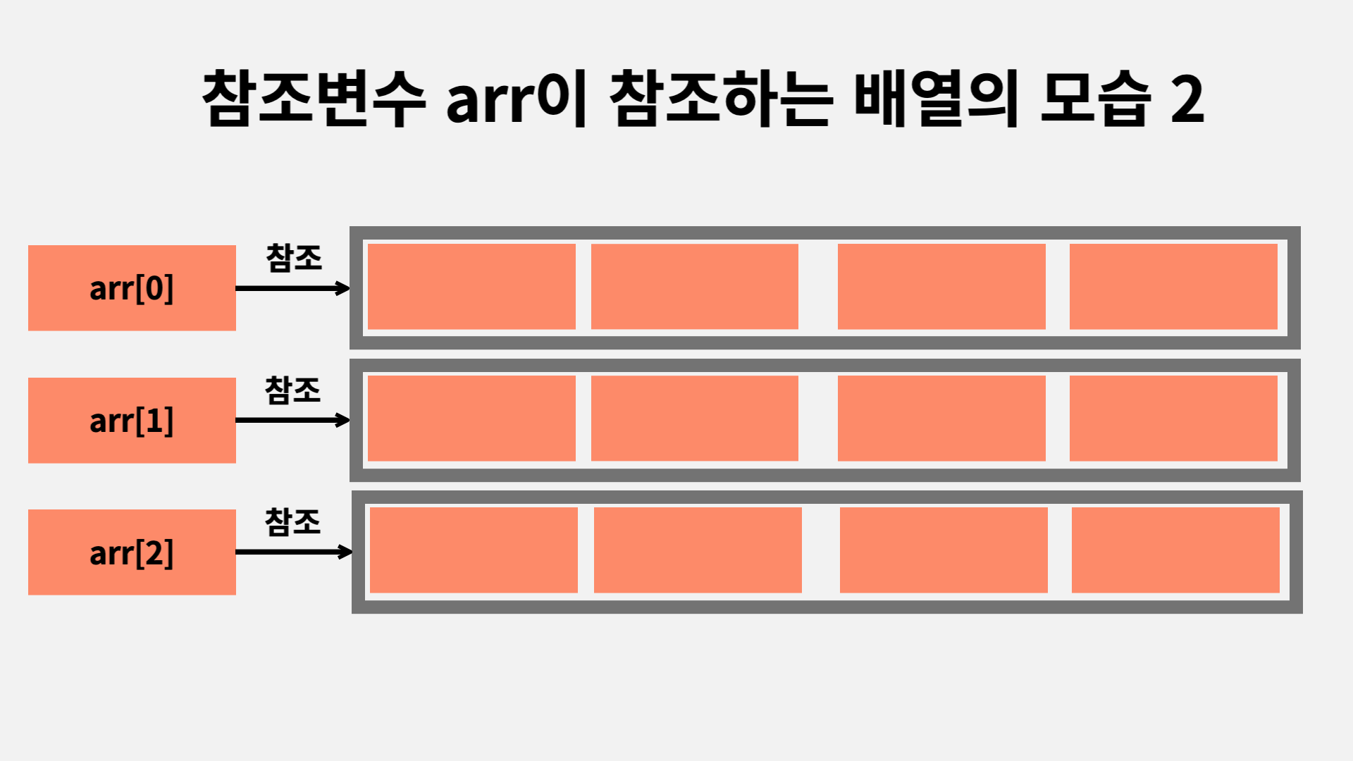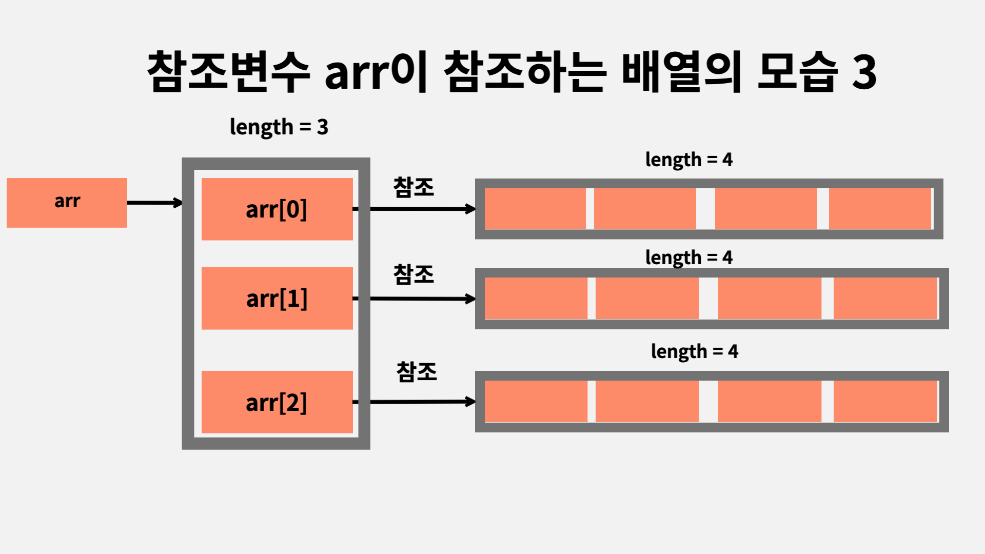 - 배열의 요소는 arr[0],arr[1],arr[2]이고 이 셋 모두 다 참조 변수입니다.