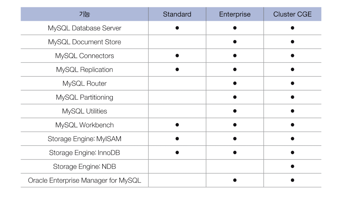 3. MySQL의 에디션 및 비교