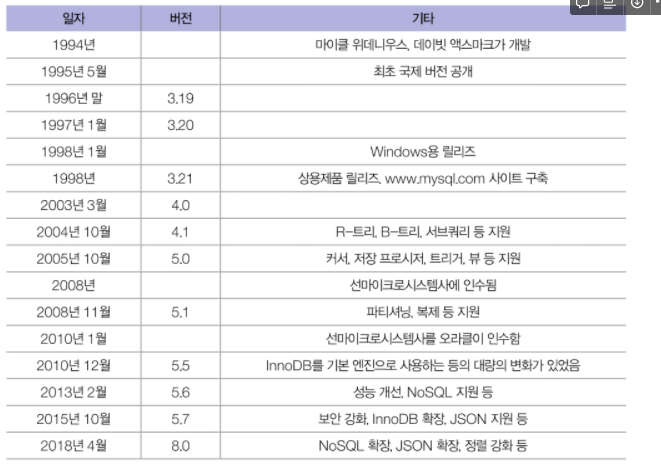 MySQL의 개요와 변천사
