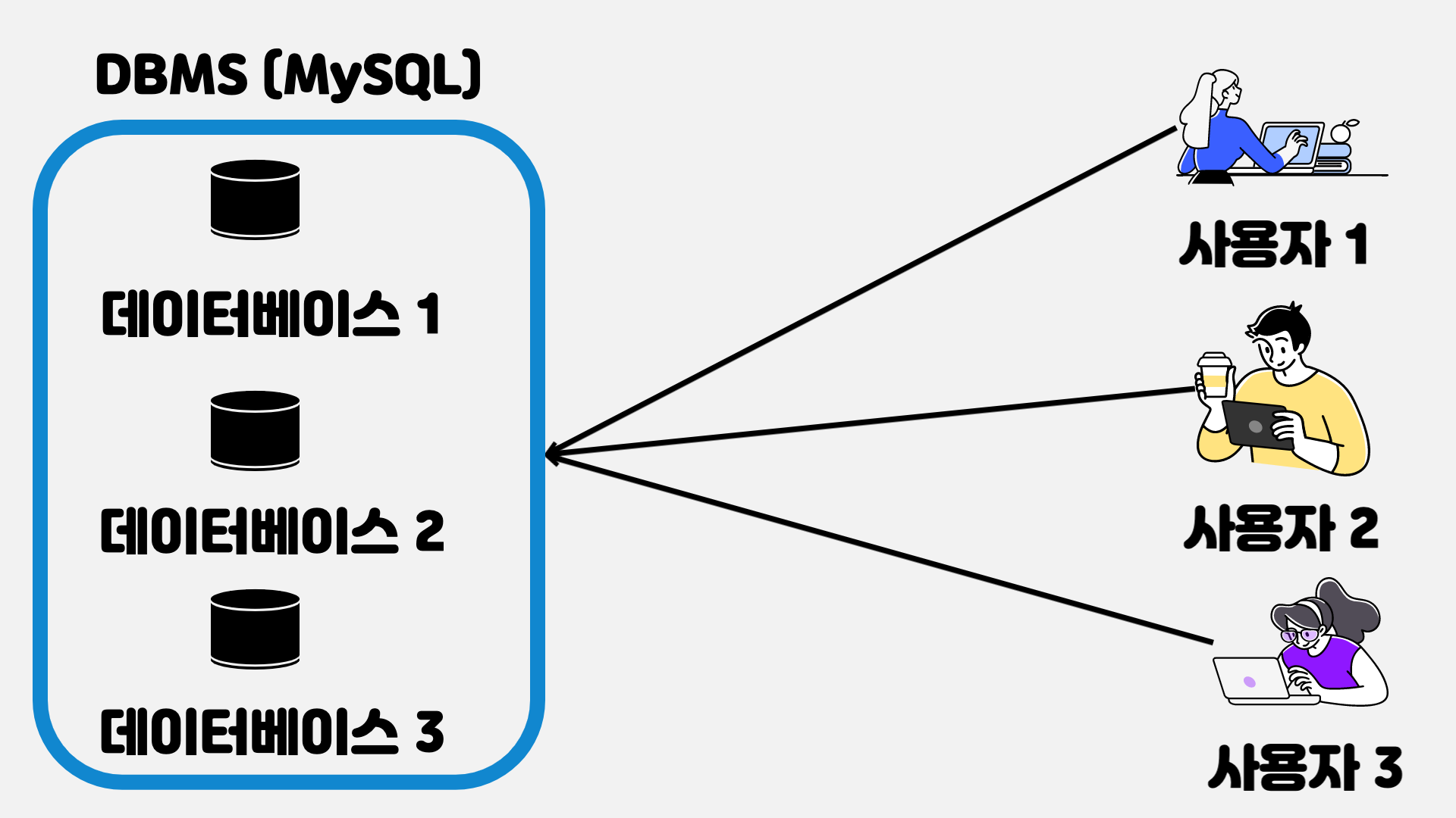 그림을 살펴보면 DBMS는 데이터베이스를 관리하는 역할을 하는 소프트웨어입니다.