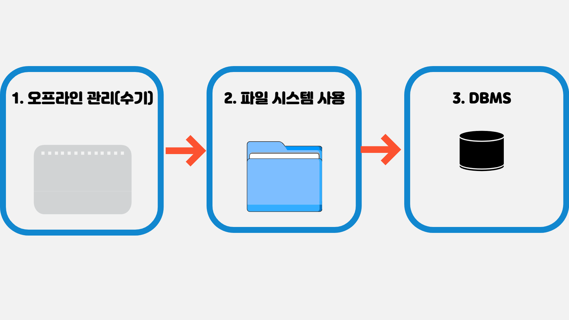- 컴퓨터가 등장하기 이전 혹은 초기에는 수기로 데이터를 관리하였습니다.