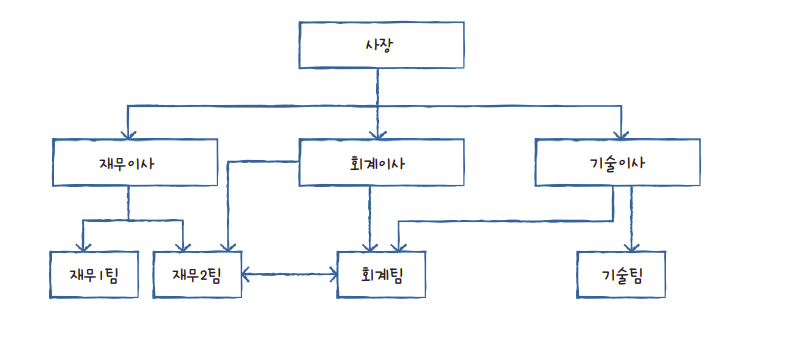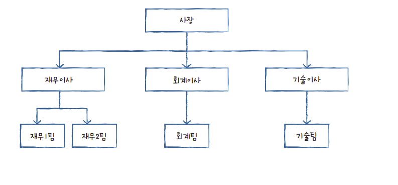- 처음에 나온 DBMS의 개념으로 그림과 같이 각 계층이 트리 형태를 가지며 1:N 관계를 갖습니다.