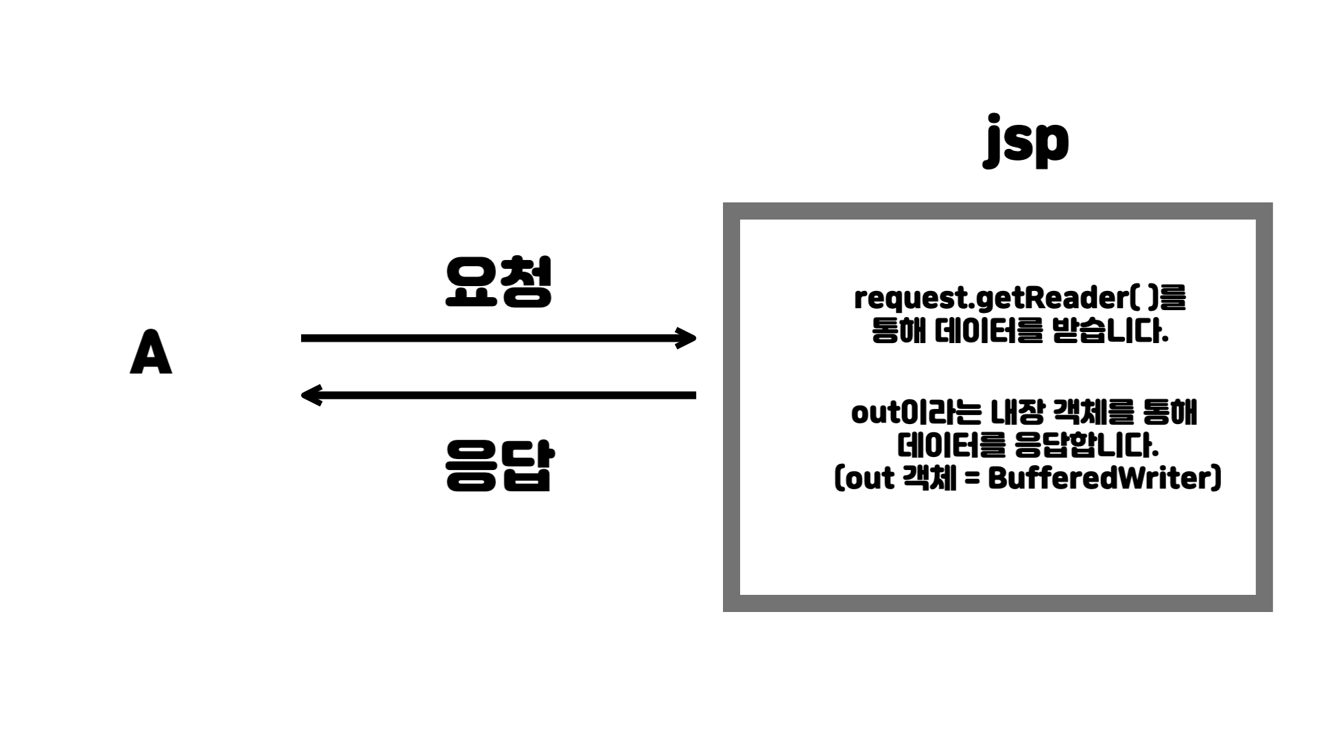 - out이라는 내장 객체를 통해 A에게 데이터를 응답합니다.