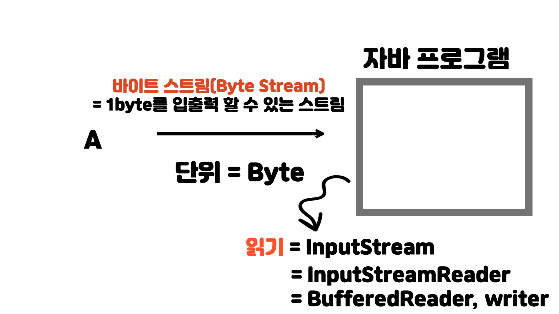 1. A에서 자바 프로그램에게 데이터를 보낼때 Byte단위로 보내게 됩니다.