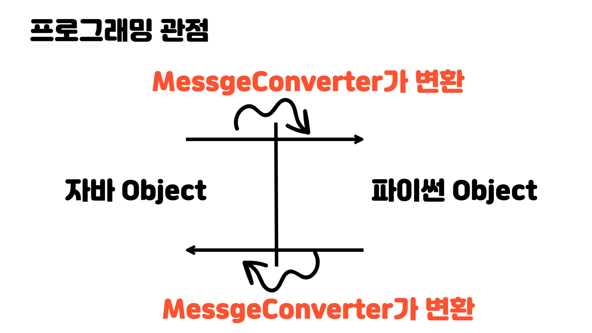 예를 들어 자바 Object가 있다면 MessageConverter가 파이썬 Object로 변환을 해주게 됩니다.