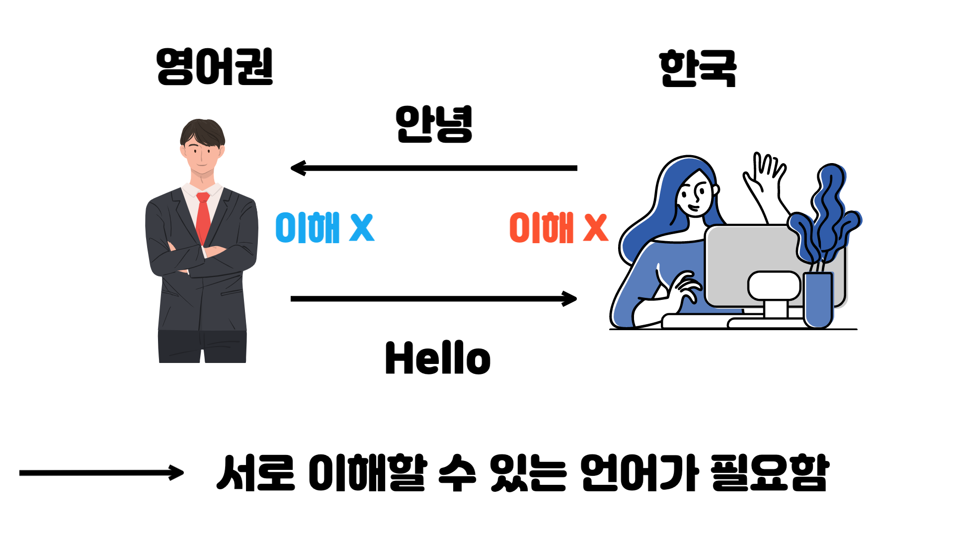 이 때 서로의 언어를 이해하지 못한다면 의사소통을 할 수 없게 될 것입니다.