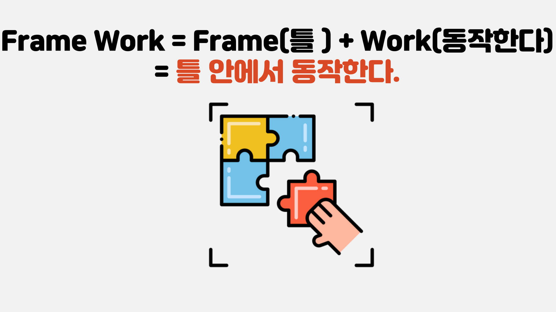 🔥 Frame Work = Frame(틀) + work(동작한다) = 틀 안에서 동작함을 의미합니다.