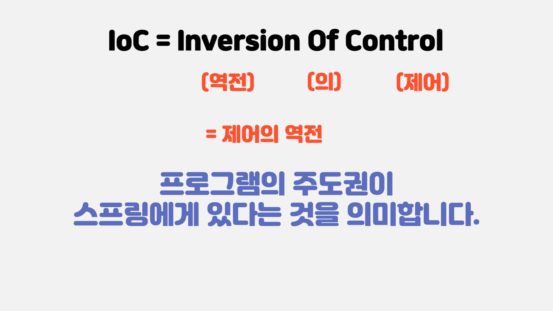 🔥 제어의 역전을 의미하며 프로그램의 주도권이 스프링에게 있다는 것을 의미합니다.