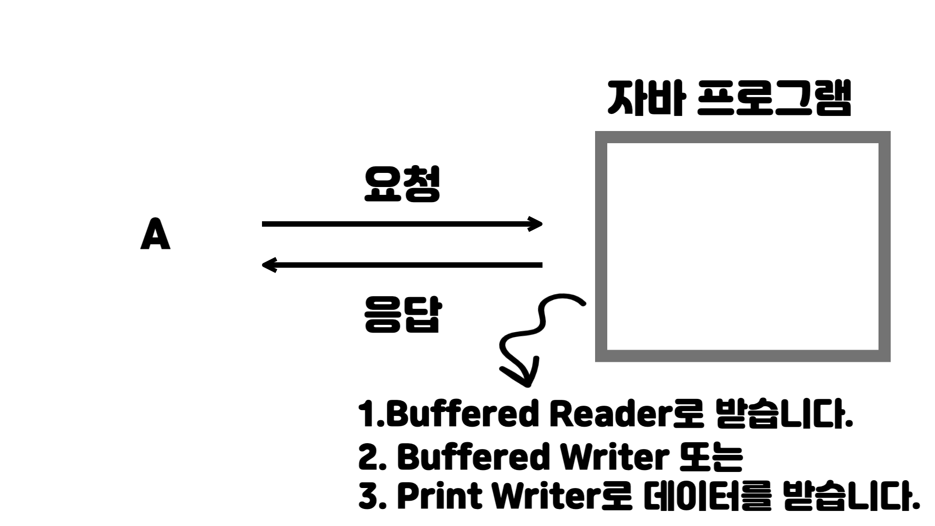 1. A에서 자바 프로그램에게 데이터를 보낼때 Byte단위로 보내게 됩니다.