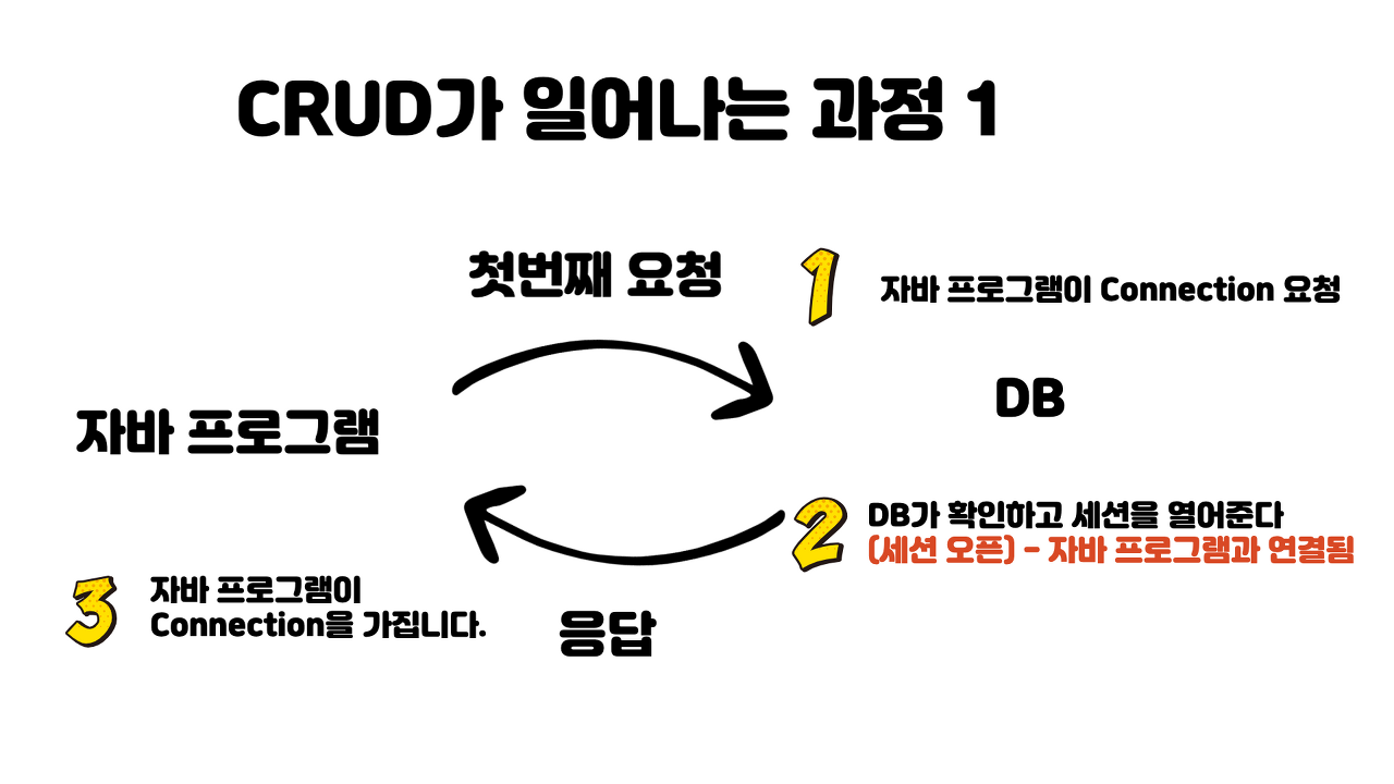 1. 자바 프로그램은 DB에 첫번째 요청을 통해 Connection을 요청합니다.