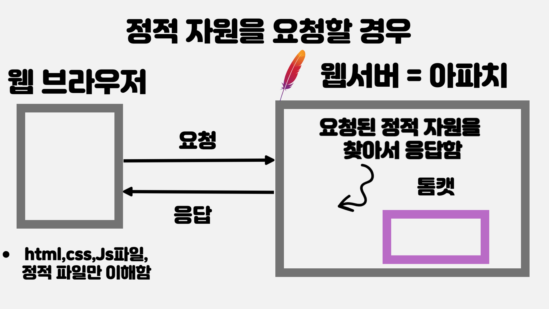 정적 자원이 요청될 경우 웹서버(아파치)는 해당하는 자료를 찾아서 웹 브라우저에 응답합니다.