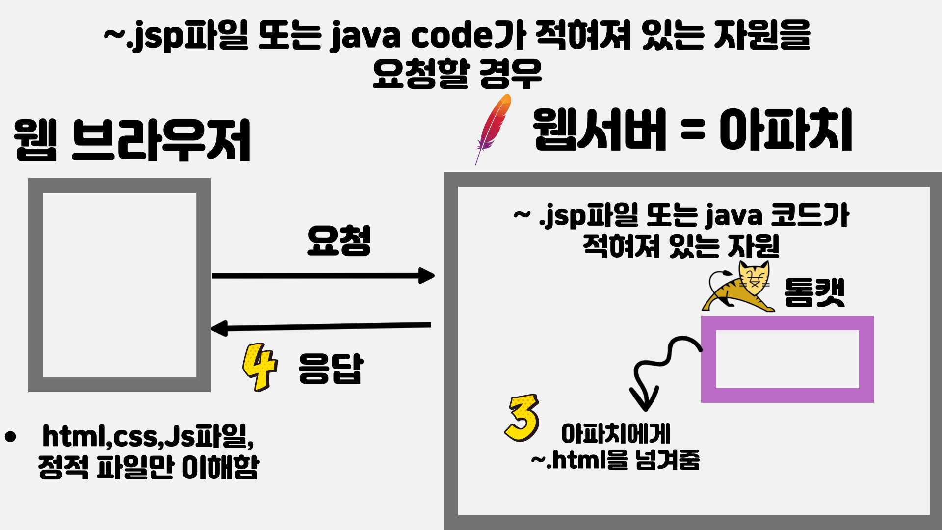 웹 서버는 해당 파일이해하지 못하기 때문에 제어권을 톰캣에 넘겨 처리하도록 합니다.