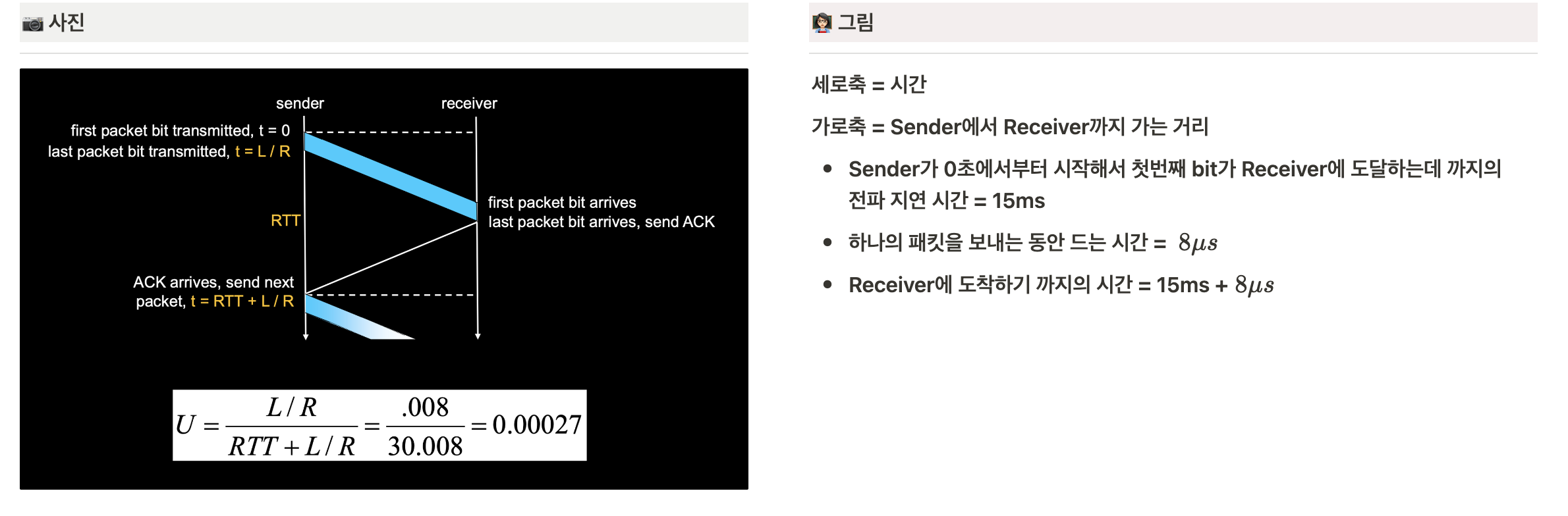 - 1Gbps 링크를 설치해 놓고 Stop-And-Wait 방식의 프로토콜 때문에 물리자원이 낭비됨