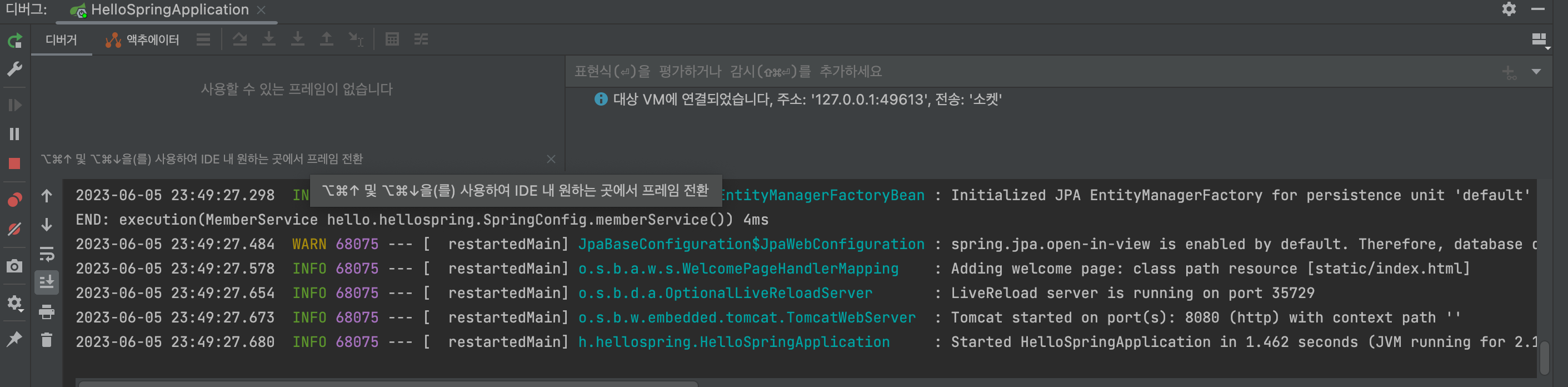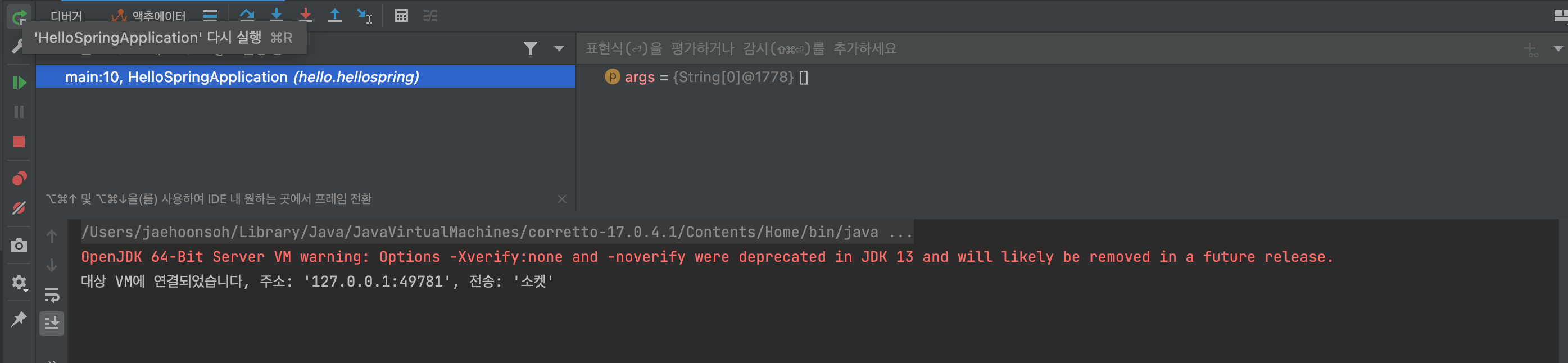 - 이전 살펴본 동일한 spring 코드에 대해서 브레이킹 포인트를 설정하여 살펴봅시다.